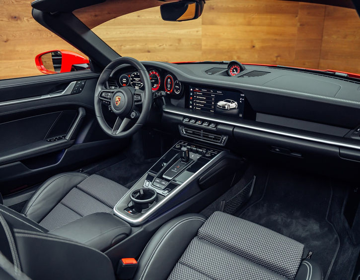 Technical highlights of the 911 992 Turbo S Cabriolet include its twin-turbocharged 3.8-liter flat-six engine, capable of accelerating from 0 to 100 km/h in only 2.8 sec.